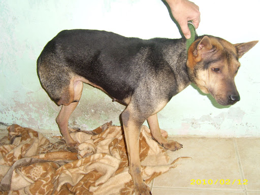 1186)18th Dec 09 : Volunteer, Beatric found an abandoned dog in the park of Tai po who cannot walk properly, probably due to being long kept in a cage, Dr Joe tried to cure him