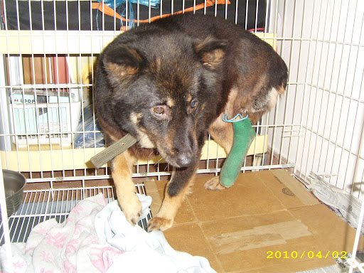 1192)24th Oct 09 : Mr Stinky,a carpark dog, was hit by a car n got his leg broken, Dr Joe fixed his broken leg n mega as well as cleans his surgical wound every week until it heals up