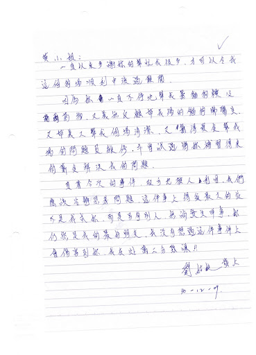 12th April 2010 : Ms Lau Mei Chun of Lam Tei's kennel thanks for for DrJoeHKCR's help