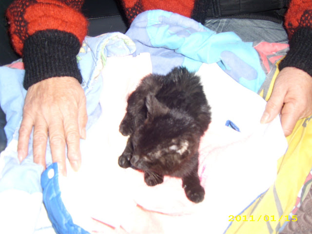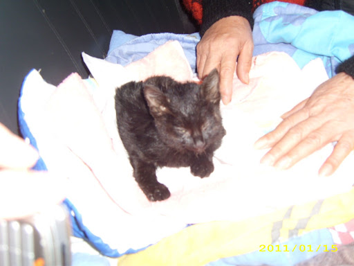 15th Jan 2011: a good guy picked up a very weak black kitten in tokwawan, bingo, whose back leg cannot move. he brought him to hkcr for help. our dedicated volunteer ms hung is taking very good care of him. now bingo is very healthy n can run very fast,also eats a lottt. he even bullies other big cats as he has already been spoiled by ms hung.